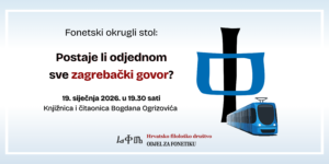 Odjel za fonetiku poziva vas na prvi fonetski okrugli stol. Potaknuti povijesnim zapisima o osnivanju Odjela (a i Društva), ali i uočenom potrebom, Odjel će organizirati razgovore o važnim stručnim temama, otvorene za javnost.